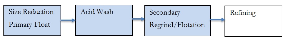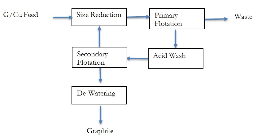 Graphite Production is analyzed based on the number of tonnes of graphite bearing rock processed. In this example a head grade of 40% is used along with a recovery of 90%. These numbers are reasonable as there is always some dilution of the mine product with wall rock. Recovery could be as high as 95% however 90% is used to err on the side of caution. The processed product grade has assumed to be 97% - 99% although a large fraction of +99% is certainly possible.