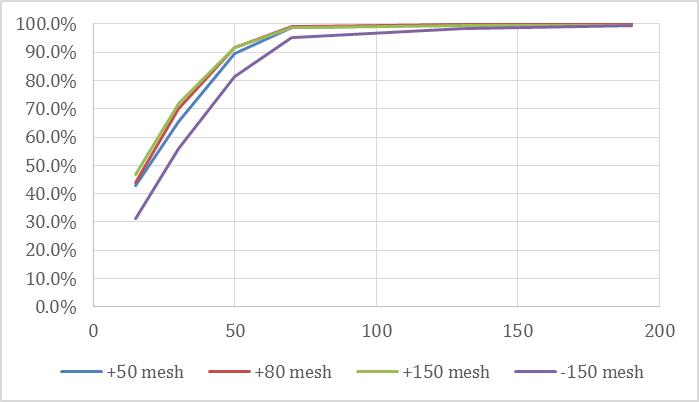 | Figure 24: Recovery of graphite as a function of time for four particle size classes. | 27 |